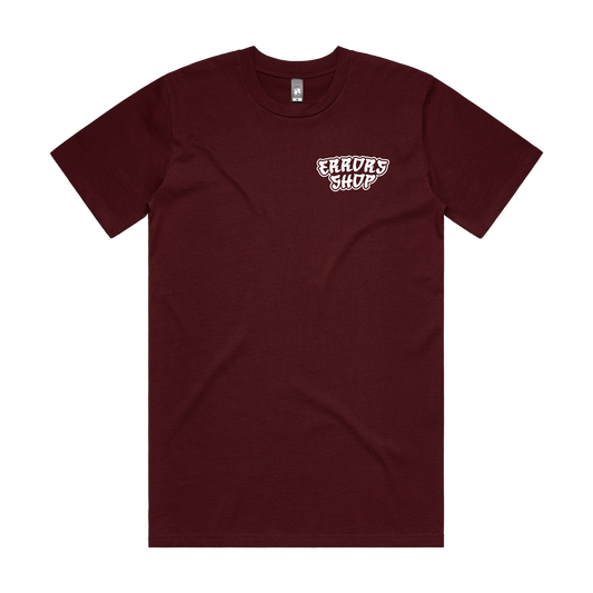 "TELL ME YOUR WHEELSPECS" Maroon tee
